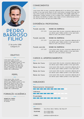 com um novo currículo com layout, cores e formato diferente. Veja como é facil!
